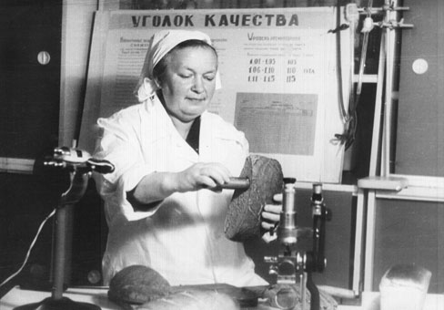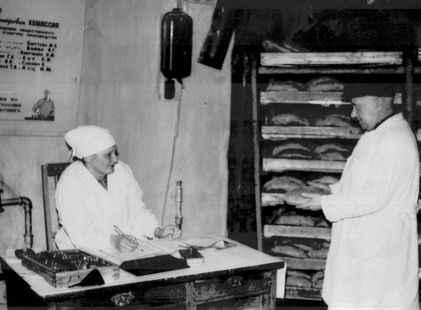 Начальник виробництва перевіряє якість хліба. (Фото 60-х років)